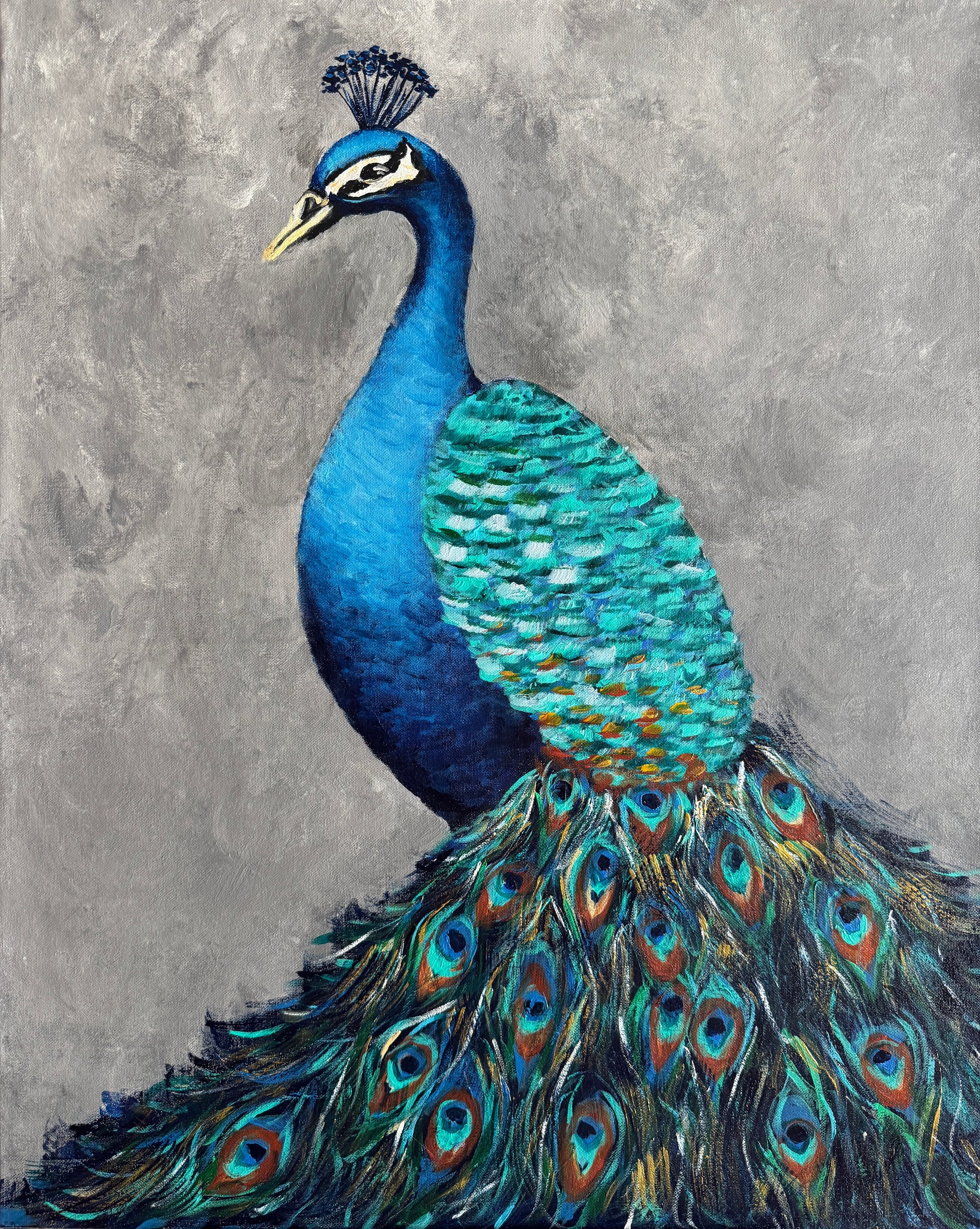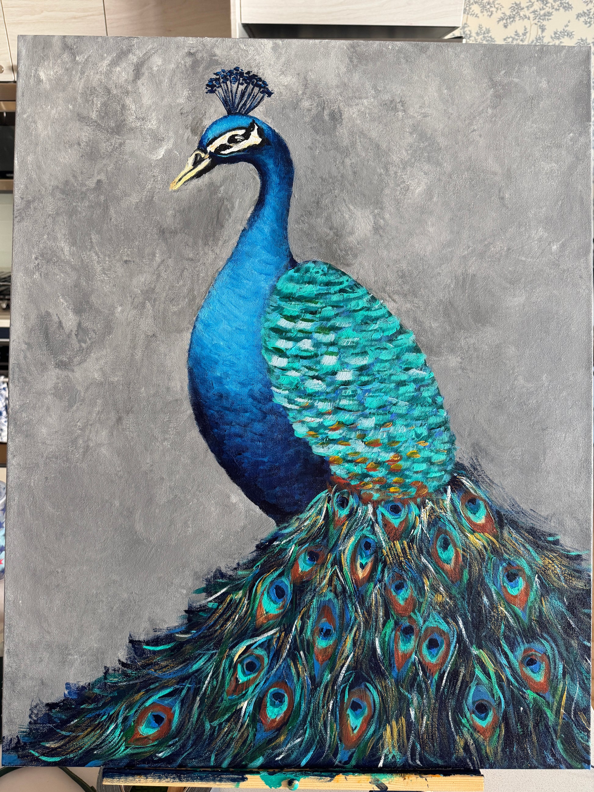 Peacock. Acrylic on canvas. 20"x30". Original art.